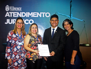 Estiveram presentes para assinatura do termo de convênio a Diretora Acadêmica Profa. Me. Ildoana Paz Oliveira, a Coordenadora de Qualidade Profa. Me. Bruna Feitosa, o Presidente da CAA-MA Diego Sá dos Santos e a Coordenadora do Curso de Direito Profa. Ana Maria Marques.