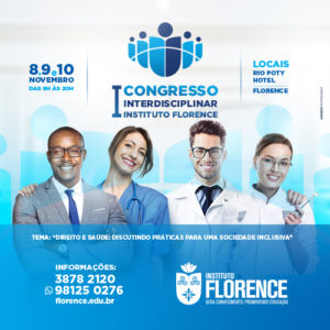 Dias 8, 9 e 10 de novembro, a Coordenação de Pesquisa e Extensão – CONEX, promove o I Congresso Interdisciplinar do Instituto Florence de Ensino Superior, com o tema “Direito e Saúde: discutindo práticas para uma sociedade inclusiva”.