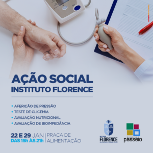 Em mais uma parceria, desta vez, com o Shopping Passeio, localizado no Cohatrac, a equipe dos Cursos de Saúde do Instituto Florence de Ensino realizará nos dias 22 e 29 de janeiro , ações voltadas para o combate à obesidade, com orientação nutricional, aferição de pressão arterial, teste de glicemia para grupos de risco e avaliação de bioimpedância, que atesta o percentual de gordura e massa magra no organismo e outras taxas. As ações acontecerão das 15h às 21h,na praça de alimentação.