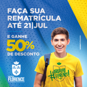 O Instituto Florence de Ensino Superior informa aos alunos dos Cursos de Graduação, em dia com seus compromissos de pagamento, que a Rematrícula Financeira Antecipada para o semestre 2018.2, será realizada até dia 21 de julho de 2018. Ressaltamos que o aluno poderá obter até 50% de descontos na sua rematrícula, conforme regulamento. E mais, ainda poderá pagar em até três vezes no cartão.