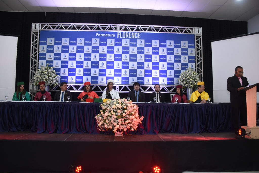 A solenidade foi presidida pela Profa. Ma. Ana Maria Marques, representando a Diretoria Acadêmica do Instituto Florence, e contando com a presença de autoridades. Integraram a mesa diretora: o Conselheiro Federal de Farmácia pelo Maranhão, Luís Marcelo Vieira Rosa; o Diretor Institucional da Ordem dos Advogados (OAB-MA), Alex Mura e o Presidente do Conselho Regional de Farmácia do Maranhão (CRF/MA) e Presidente do Sindicato dos Farmacêuticos do Maranhão (SINFARMA), Carlos Augusto Barboza Toledo. Compuseram também a mesa, representando o Instituto Florence de Ensino Superior: a Profa. Amanda Tereza Barbosa Gomes, Coordenadora do Curso de Direito e também representando a Diretora Geral do Instituto Florence de Ensino, Profa. Dra. Rita Ivana Barbosa Gomes e a Presidente da Mantenedora, Sra. Teresinha de Jesus Barbosa Gomes; a Profa. Ma. Ana Larissa Nogueira, Coordenadora do Curso de Enfermagem; o Professor Me. Luiz Fernando Ramos, Coordenador do Curso de Farmácia e as Coordenadoras do Curso de Odontologia, professoras mestras, Karime Tavares Lima e Francilena Maria Campos Santos Dias.