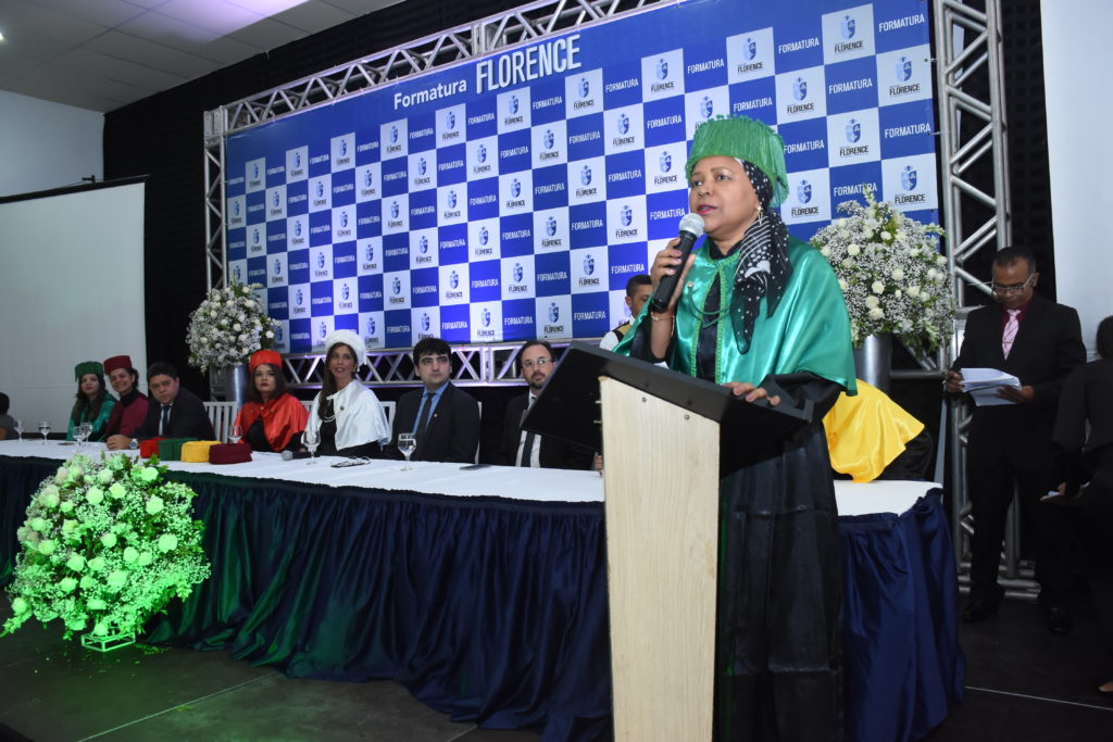 A Profa. Ma. Ana Maria Marques, representando a Diretoria Acadêmica do Florence, saudou a todos os presentes e parabenizou os formandos pelo êxito, em um discurso emocionante e contagiante, onde lembrou a todos o quanto é importante não perder a ambição de saber, de conhecer, de aprender e de repartir, frisando que em uma sociedade em que é natural a desigualdade e a injustiça, profissionais que se comovam e lutem para mudar essa triste realidade nunca serão demais, em todas as esferas e níveis sociais.