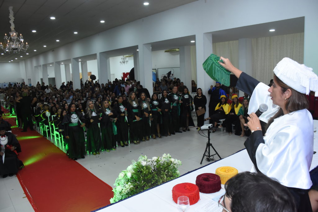 O momento mais importante da cerimônia foi a conferência do grau aos novos Bacharéis em Direito, Enfermagem, Farmácia e Odontologia, pela professora Ana Maria Marques, na presença dos coordenadores, professores, autoridades, familiares e convidados.