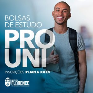 O Instituto Florence de Ensino Superior comunica que as inscrições para o Prouni 2019, estarão abertas de 31/01 a 03/02/2019.