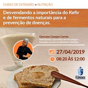 O Curso de Nutrição do Instituto Florence de Ensino Superior promoverá, no próximo sábado (27), das 8h20 às 12h, o Curso de Extensão na área de Nutrição: “Desvendando a importância do Kefir e de fermentos naturais para a prevenção de doenças”.