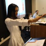 Sabrina de Oliveira, aluna do primeiro período de Odontologia, escolhida como oradora da turma, contou a emoção de estar vivenciando a cerimônia do jaleco. “É uma honra poder estar falando nessa tarde inesquecível, durante a nossa cerimônia do Jaleco. Uma tarde que materializa o ingresso nessa jornada pelo nosso sonho. O jaleco é um EPI primordial que representa a nossa atuação na área da saúde. O jaleco representa o comprometimento com as obrigações, a responsabilidade, o respeito, a empatia, o cuidado e o amor com a saúde. Essa cerimônia representa o compromisso que nós firmamos com a formação profissional, ética e responsável. A vocação e o nosso amor pela Odontologia são a força motriz da nossa trajetória. A nossa união, respeito e todos os momentos que passamos juntos na sala 301 são o que torna esse momento ainda mais especial e importante para todos nós”, revela.