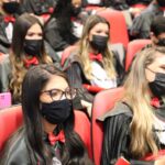 A formanda Barbara Piazerra Silva Costa, oradora do turno noturno, ressaltou as lutas vividas em meio à pandemia. “Formamos em meio à pandemia e o que nos manteve foi a união. Como turma da pandemia, vou lembrar para sempre de ser resiliente, de que a união é a minha maior dádiva e de viver todos os momentos porque podemos não ter mais a oportunidade. E você, o que te representa?”, questionou.