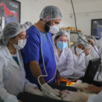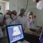 A aula contou com a presença de um professor convidado, o médico veterinário Danillo Brenno, mestre em Ciência Animal e doutorando em Ciência Animal, pela Universidade Estadual do Maranhão (UEMA). “A ultrassonografia gestacional em cadelas é recomendável desde o pré-natal para confirmar desde prenhez até a prevenção de perdas. Além disso, é importante realizar o exame para a saúde da mãe e dos filhotes, por isso precisa ser conduzida por profissionais capacitados com auxílio de equipamentos modernos e precisos”, explicou o prof. Danillo.