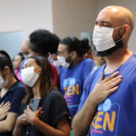 A ‘Oração Natalina’ iniciou com louvores e orações a Deus. Na ocasião, o Pe. Trindade, compartilhou uma palavra e orou. Em seguida, os pastores Rosileia e Mesquita partilharam palavras e oraram junto a todos.