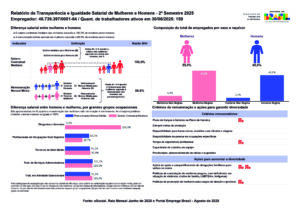 Entre os critérios de remuneração adotados estão o Plano de Cargos e Salários ou Plano de Carreira, o cumprimento de metas de produção, a disponibilidade para horas extras, reuniões e viagens, a experiência profissional, a capacidade de trabalho em equipe e a proatividade na geração de ideias e sugestões. O relatório também evidencia ações voltadas à diversidade, como o incentivo ao compartilhamento de responsabilidades familiares entre os sexos, políticas de contratação de mulheres negras, com deficiência, em situação de violência, chefes de família, LGBTQIA+ e indígenas, além de políticas que promovem a ascensão de mulheres a cargos de direção e gerência. Para consulta detalhada dos gráficos e tabelas oficiais do Relatório de Transparência e Igualdade Salarial de Mulheres e Homens – 2º semestre de 2025, veja abaixo as imagens com todas as informações deste período.