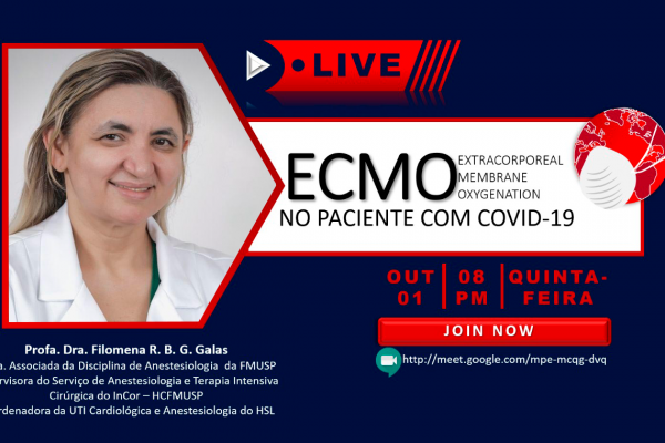 “Extracorporeal Membrane Oxygenation (ECMO) no paciente com COVID-19” será o tema de uma live que ocorrerá via Google Meet com a Profa. Dra. Filomena R. B. G. Galas. Os interessados poderão participar do evento por meio desse link: http://meet.google.com/mpe-mcqg-dvq. Não perca!